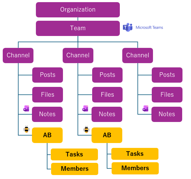 Diagram: Each Teams channel corresponds to a single AB project. The channel holds its own posts, files, and notes — and AB adds structured tasks and members within that same channel space.2. Visiting the Tab to Join the Project