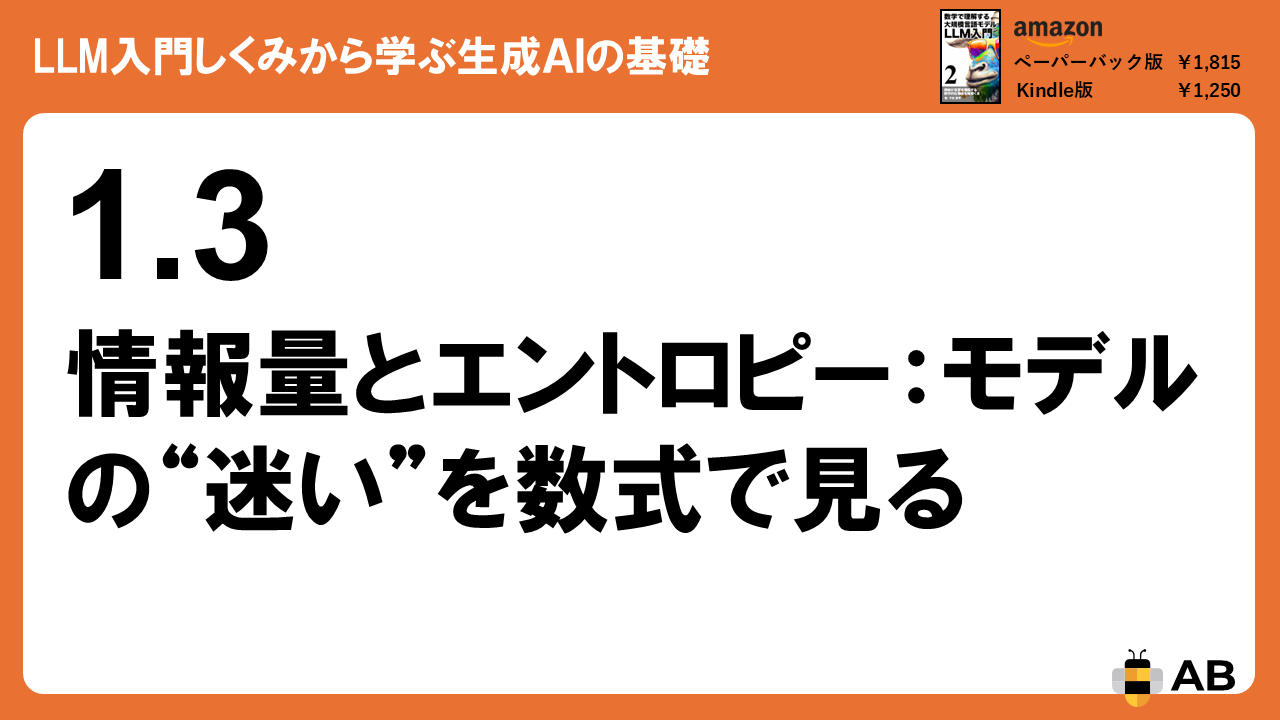 1.3 情報量とエントロピー ― モデルの“迷い”を数学で読む